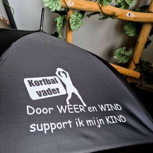 De paraplu is niet alleen voor naast de zijlijn op het voetbalveld, maar ook bij de hockey, korfbal, manege en alle andere sporten waarbij je als supporter in de regen staat.